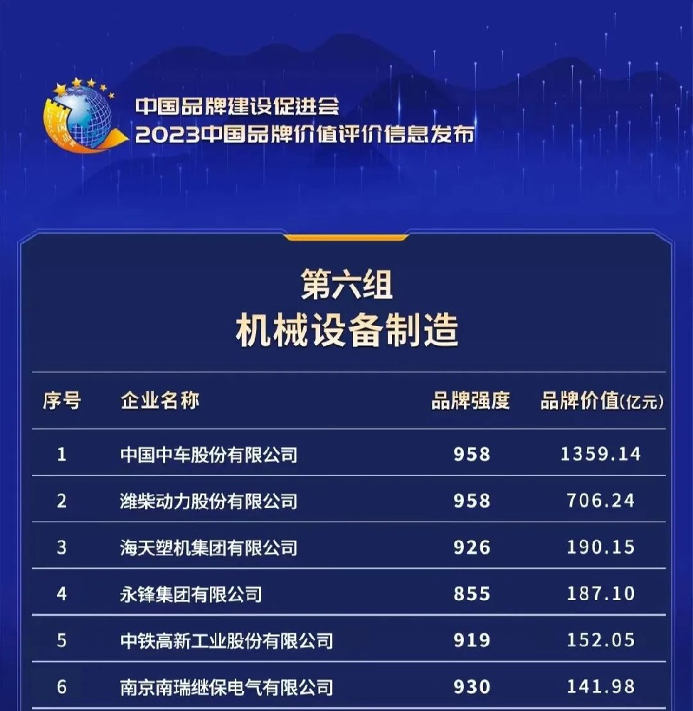 日前,由新華社、浙江省人民政府、中國品牌建設促進會、中國資産評估協會聯合發布“2023中國品牌價值評價信息”,中國中車以1359.14億😘元品牌價值登上中國機械設備😵💫制造領域品牌價值榜首,品牌☠️強度達958,位居全榜第一,入選“品牌建設領跑者”。